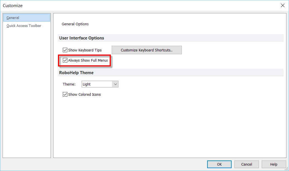 Robohelp 2015 Problems Customizing Quick Access Toolbar