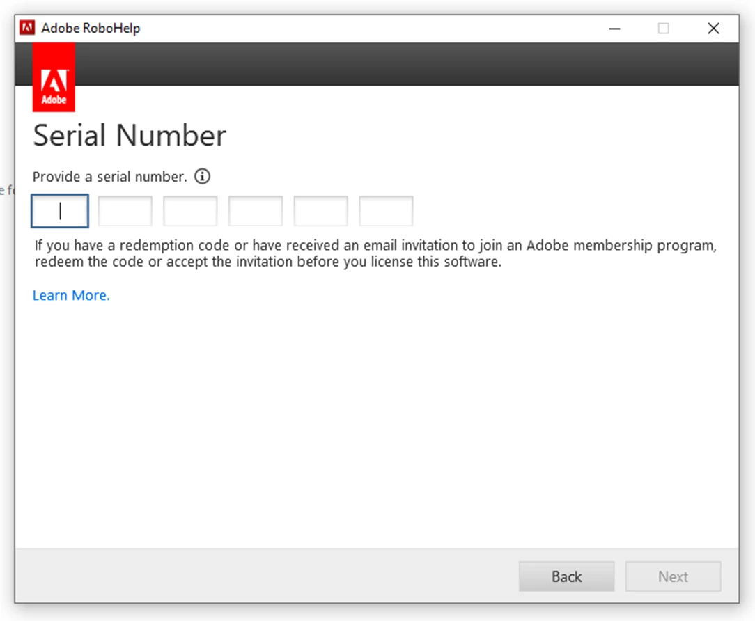 As per our discussion regarding Adobe RoboHelp 2017. We checked with the internal team and RH 2017 will not work with the current subscrition. The serial-based licensing system is already end-of-life (EOL). RH 2017 will only work with the serial number.