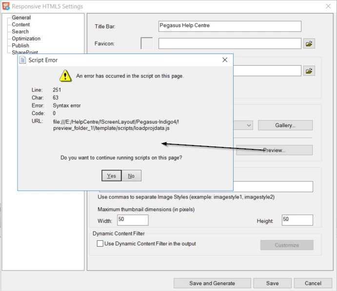 When the output is generated for real, the !SSL folder is updated, with the javascript files in the 'scripts' folder; for example, mine is E:\HelpCentre\!SSL!\Pegasus-indigo4\template\scripts. I copied the files here and that sorted it.