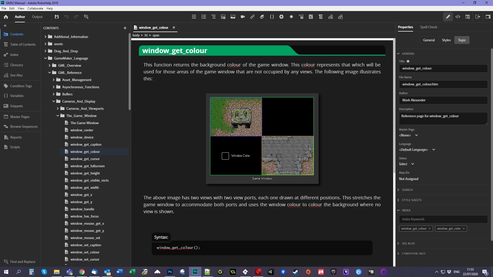 Note that there are index entries before and after these ones that do appear fine (for example the entry for API function "while" appears fine, as do the API entries for "xbox_", so I don't think it's related to the number of entries in the index (but I guess it could be, as after searching the community I found a couple of posts from 2017 or thereabouts with a similar issue using Legacy Robohelp, and those were a bug in RoboHelp which I'd assume would have been fixed by now).
