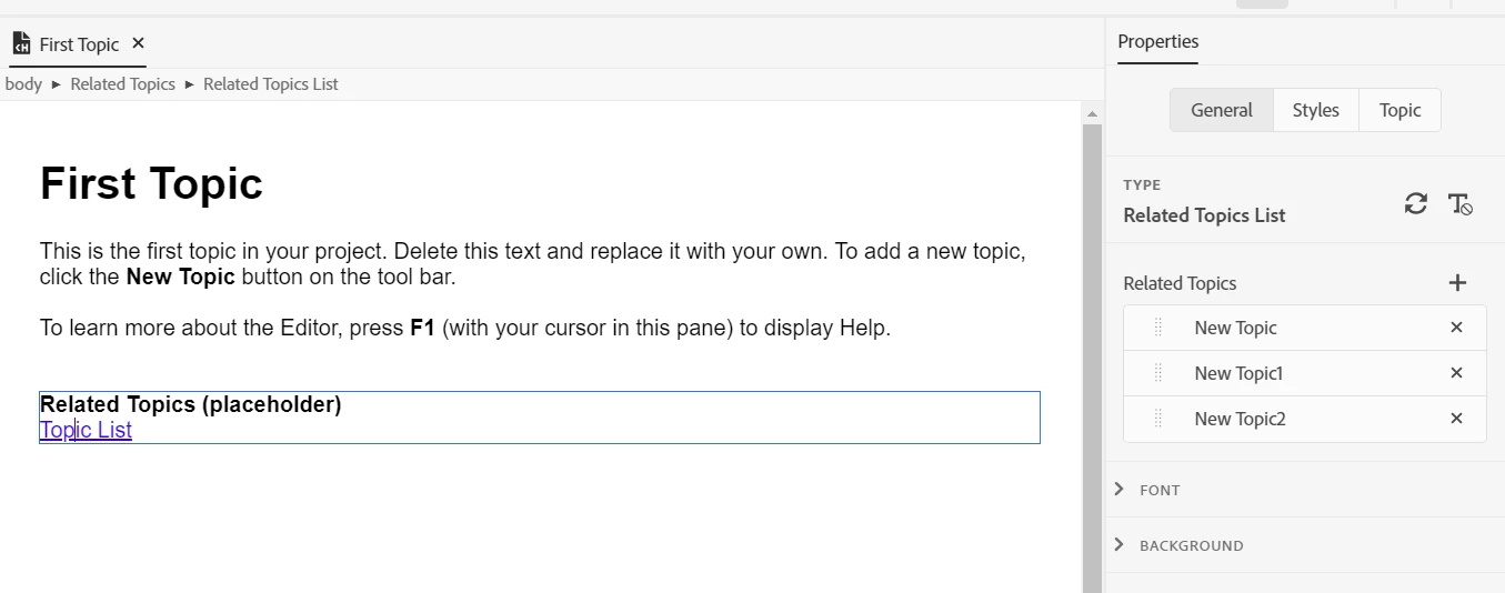 When you update a "Robohelp Classic" project to Robohelp 2019 the resulting related topics lists are populated by the filenames of the topics including any underscores. While you can set fonts and capitalization you cannot actually edit the Topic Title in the Related Topics Properties.