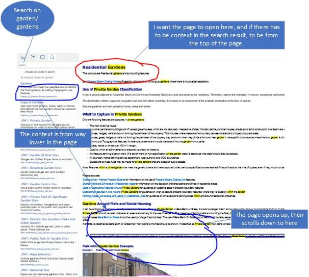 For example we have a page called Gardens , with heading 1 at the top "Private Gardens", and some high level text which would be appropriate as context.