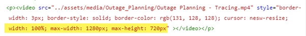 The only workaround I found after hours of trial and error is to manually edit to topic source to include a <style> tag with the width set to 100% and a max-width set to “1280” as shown below. It does not work if you put max-width in the video tag outside of the style tag.