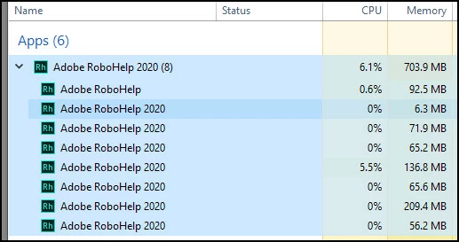 I did notice RoboHelp 2020 is running 8 times.
