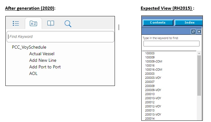 While working on the project, the indexes are not getting generated or partially generated. I have tried adding indexes as keyword and also as sub-keyword under the main default index, which I have renamed (PCC_VoySchedule) as per project requirement. But both the cases, the result shows partially generated index.