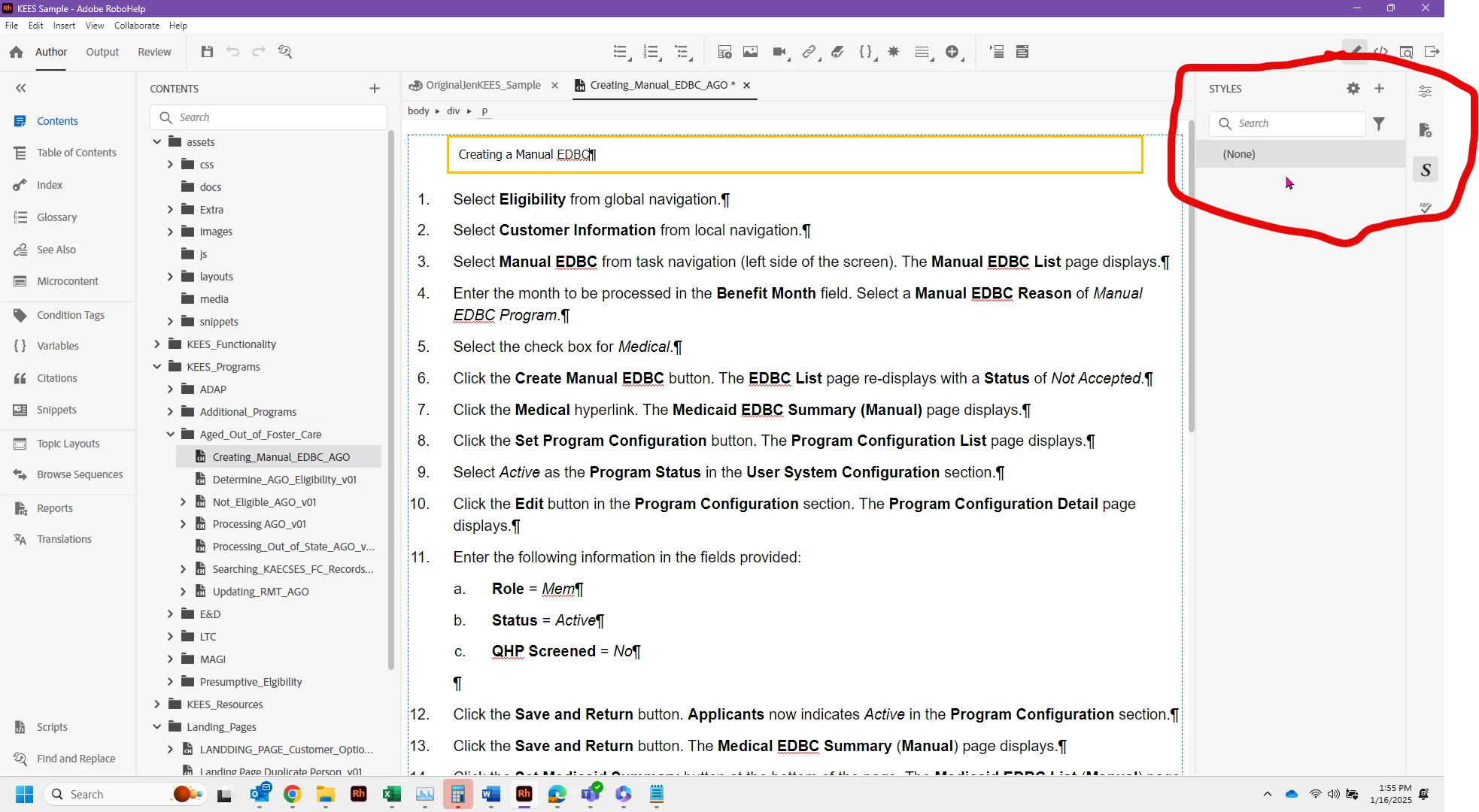 Robohelp 2022 - Styles are missing - it shows NONE in the pane on the right where styles r listed