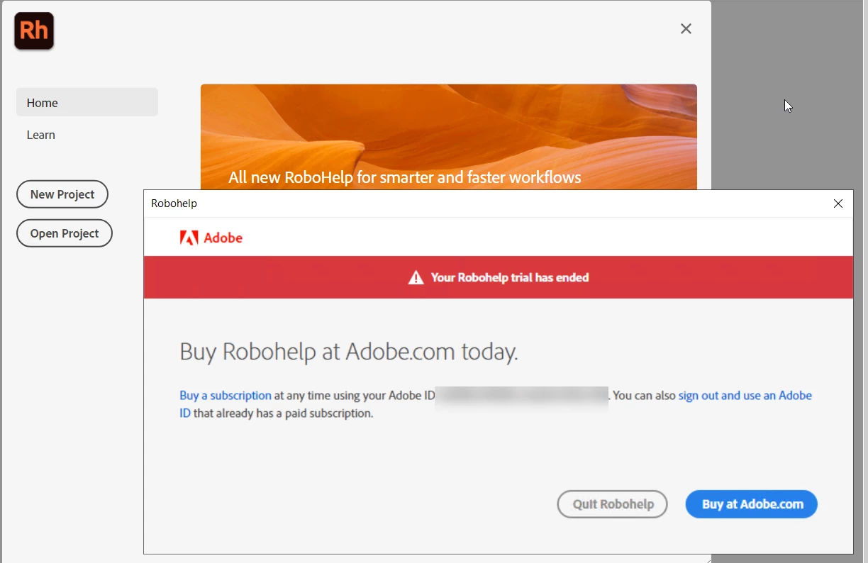 I installed RH 2022 trial yesterday. The splash / home screen opens up okay, but then I get a message that my trial has expired, and the app closes. It was my first day using the trial so the message is incorrect. Anyone have this issue and know of a fix for it? I started a chat with Adobe and the chat got interupted. I started another chat and then was told I could have the original person call me back. While I wait for the call, seeking advice here.