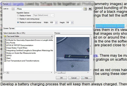 I build HTML CHM help files. I have many times used Hyperlink/Popups for users to view a picture of what is being discussed underneath it. As illustrated below, the "grey colored lines" link should bring up the picture below it. This is a screen cap from the View Selected Item command on the tool bar. That is why you can see it here.