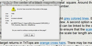 I then save all, and produce the CHM file. Opening the chm file and clicking on the link brings up this error box.