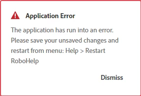 I'm doing a thorough index edit on my RoboHelp project and, every 10 or so topics, RoboHelp displays that there has been an error, and I should save my work and restart RoboHelp. Here is the error: