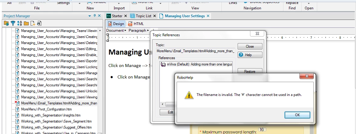 Robohelp error saying # character not supported