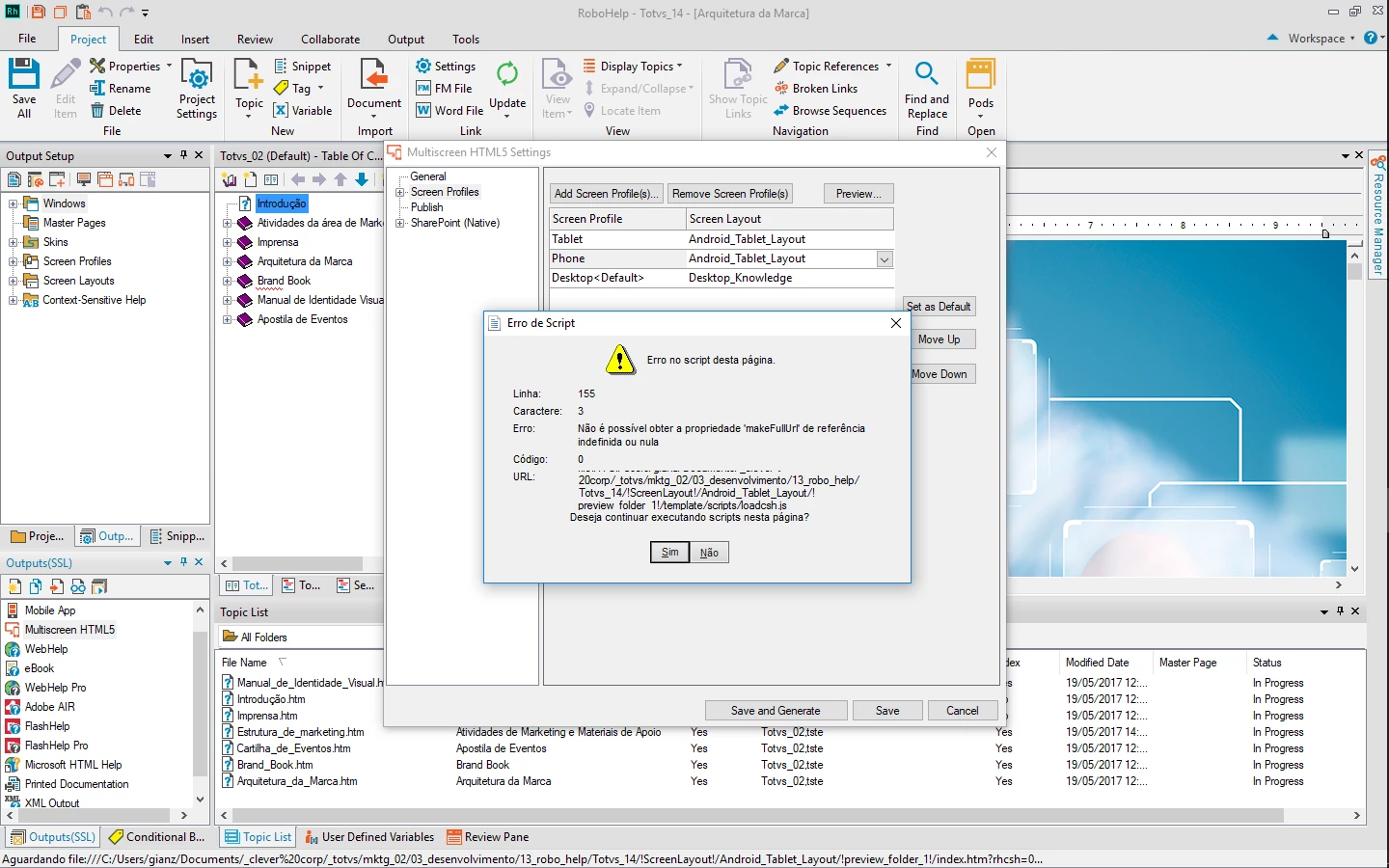 I just downloaded the latest version of Robohelp 2017 but a script error is occurring when I click the "preview" button of the Multiscreen HTML5 Settings window.