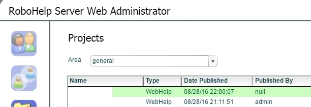I am facing issue in publishing my project. While I am publishing the Project using "WebHelp" i am see two entries are creating in Projects section under the "Web Server Administrator".