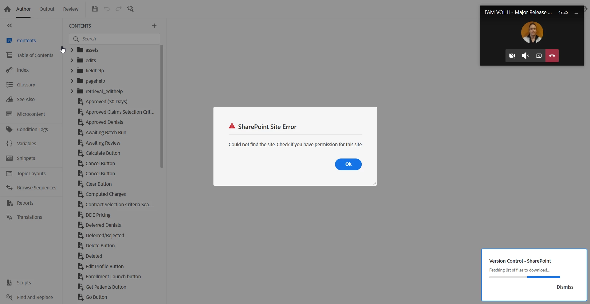 After 30 minutes one of the user called me and told me that after receiving the message error and not being able to retrieve the topics content displaying the error above, she was able to now function normally and update the content.