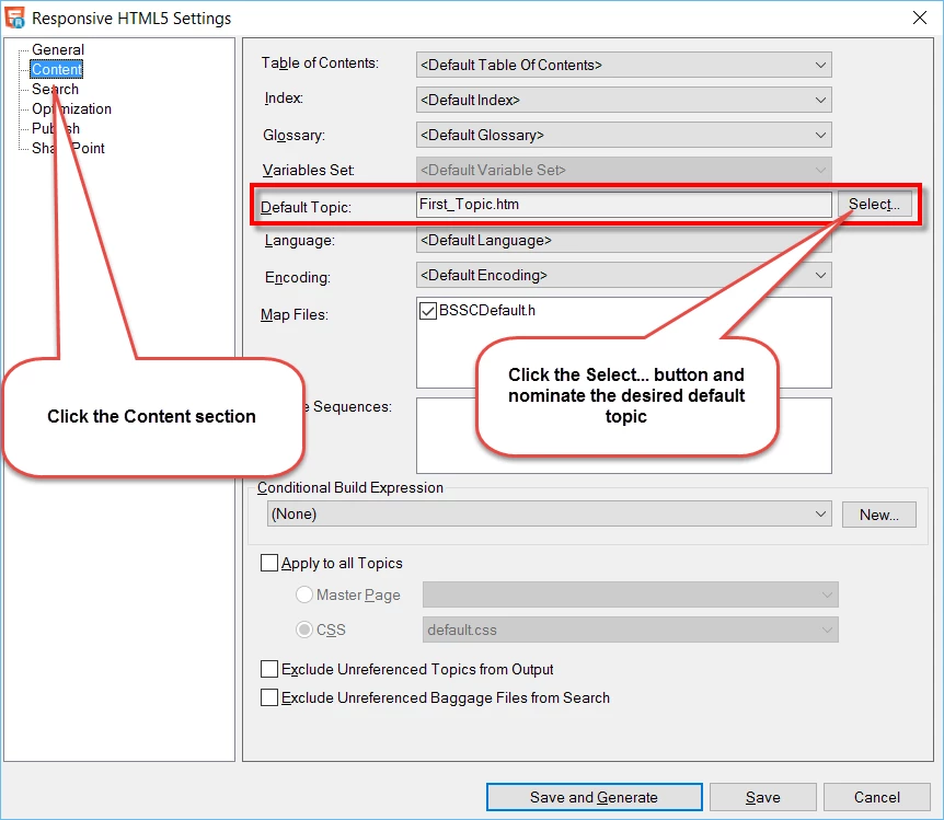 My TOC has three books with subtopics under each. However, it displays with the first subtopic in the first book open when I generate the help. I have tried everything I can think of to fix it including finding an answer here on the Forum (which did not work for me) and setting the startup topic to the desired topic instead of index.htm. Still no luck. I've tested in IE and Chrome and it still doesn't work the way I want. I can get it to work fine in WebHelp.