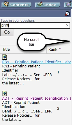 When reviewing my Search items in IE, it only lists a few of the search result items and no scroll bar to see the rest (see image).
