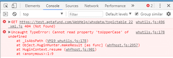 I'm running RoboHelp 2017. When I generate WebHelp and view it locally, Search works fine for all search terms, but when I view it on the server after it's integrated in our application, it no longer works for all search terms. For example, I can search on bank account and chart of account structure, and the search produces results. But when I search for use tax, the search produces no results, and the search freezes. I get the same results in Chrome, IE 11, Firefox, and Edge.