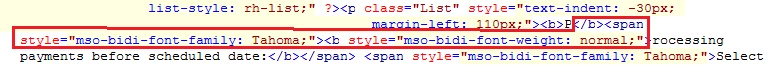 This code is causing the search to fail. A search for "rocessing payments before scheduled date" works. We are not using the Tahoma font family, and we are using a Master page that, among other things, applies the .css page we want to use for styling the help output.