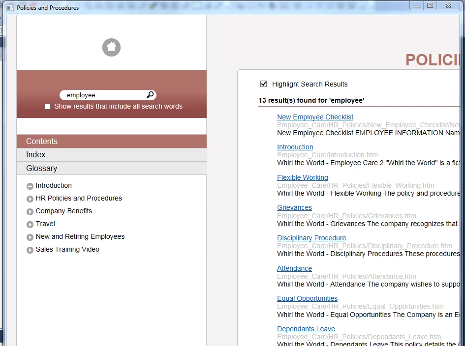 Me search results appear in the main content area, rather than in the left side panel. I cannot keep the search results in the left panel and see the linked content in the main window.