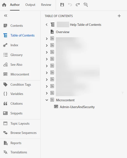 I'm using RoboHelp 2022.5.28 to author my content, which is currently published to Responsive HTML5 output. I'd like to start using Microcontent and publish to a Frameless output. I've read the RoboHelp User Guide as well as finding many internet articles on both subjects. I've also watched several videos on both subjects. I cannot seem to get the Search text field in the Frameless output to even display on-screen to use to even know if my Microcontent is authored and published correctly. Note: In the screen shots provided, I had to blur certain information for security purposes, but I don't believe that should hinder understanding what is authored and what the issue is.