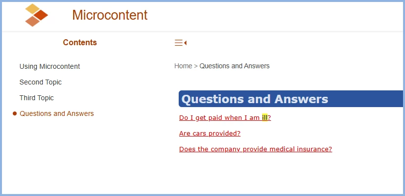 I've added the Microcontent into my Table of Contents but set the properties so it doesn't actually display in the published Table of Contents.