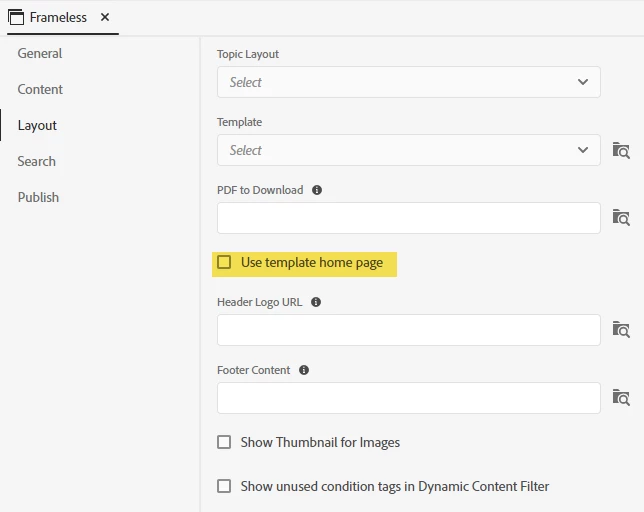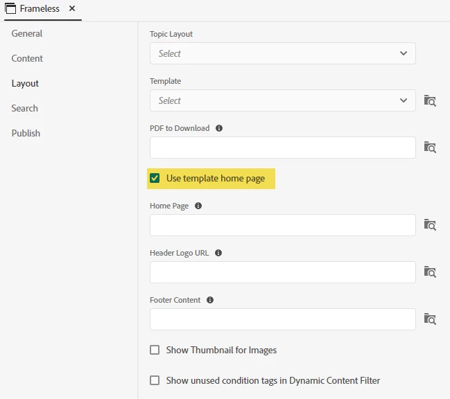 In my Frameless output preset, I've selected to use the "Studio" Template but not "Use template home page". (I've also tried the other Frameless Templates and have issues with all of them.)