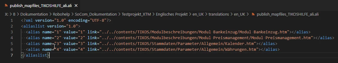 In the XLIF file it is as in Robohelp design mode, but the text does not show up: