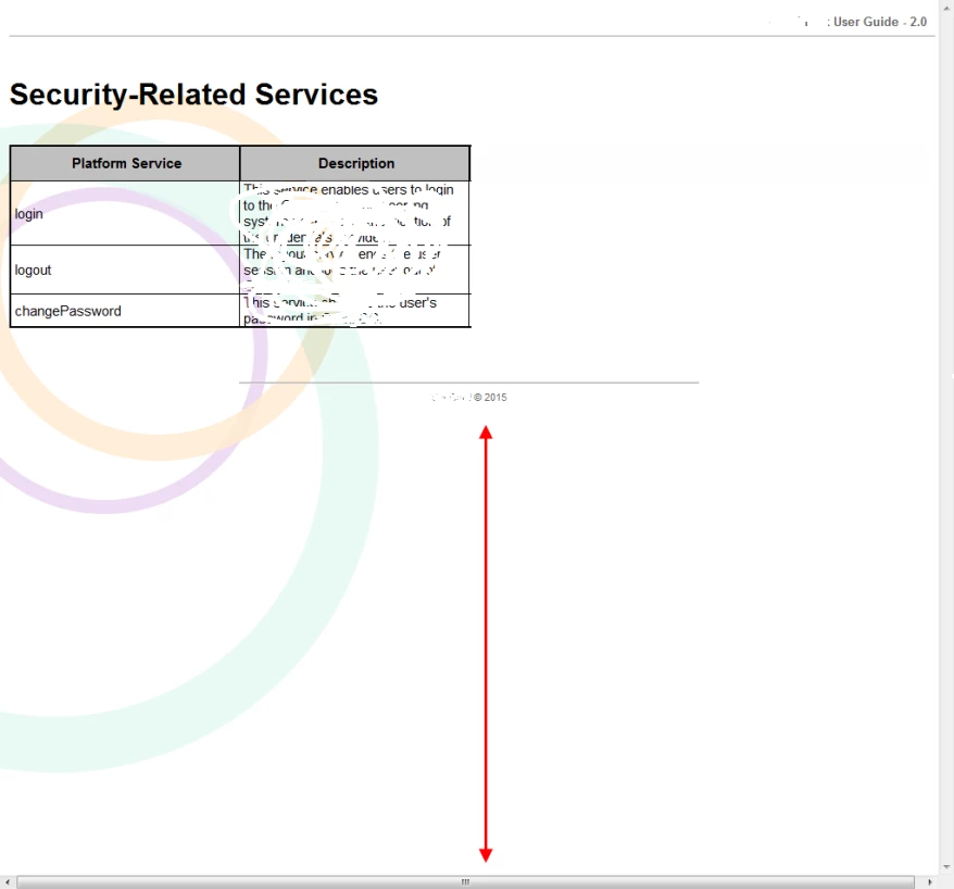 It would be of great help if someone can provide steps on how the footer can be configured so that there is no blank space at the bottom of the page in the default view mode. Attaching an image where the red arrow illustrate the blank space that should not be appearing. Blurred out bits of the image since this is the actual work document. The footer should ideally be at the bottom of the page.