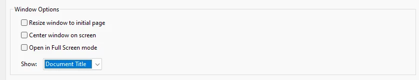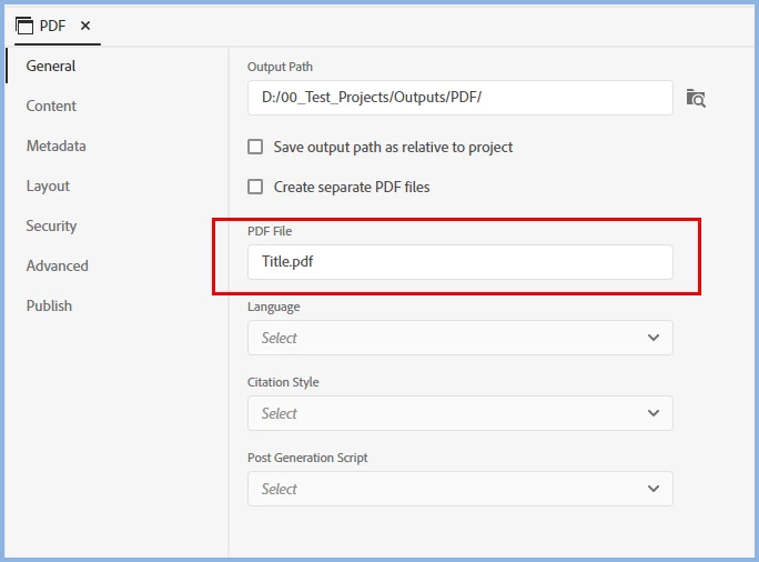 In MadCap Flare, there is a specific field for setting what appears in the title bar and document tab in the PDF reader, so you can use either the filename, or a custom name.