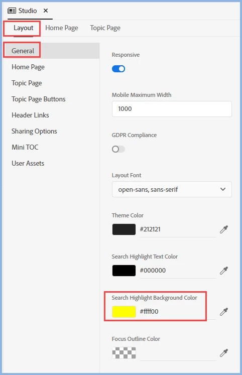 I'm looking for the setting that can change these yellow higlighted search results in the selected topics.