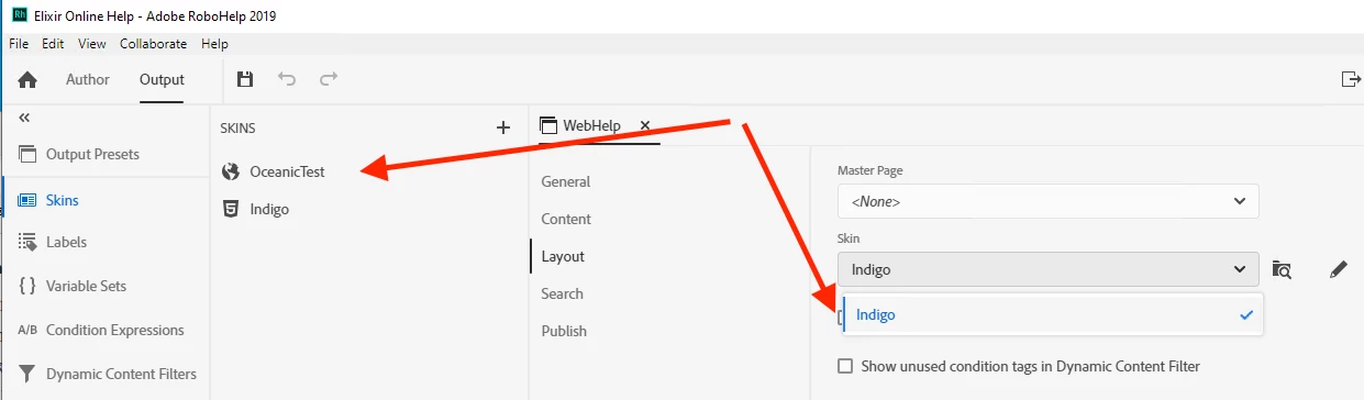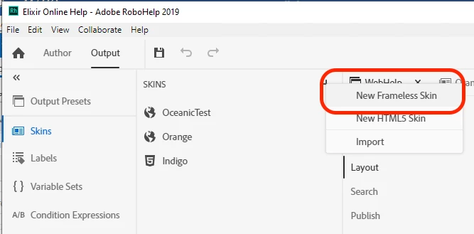 So, I created a Skin, but it isn't available on the Layout tab for the WebHelp output.