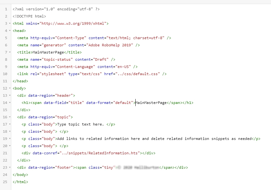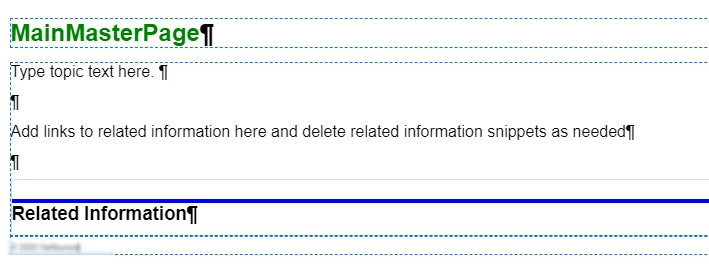When I create a new topic with the master page, the snippet is only partly there. I can see the blue border, but not the "Related Information" heading. The heading is also no present when I compile the project. I think the border is (I last compiled yesterday).