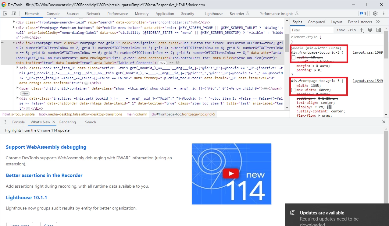 Sortie Responsive HTML, largeur écran