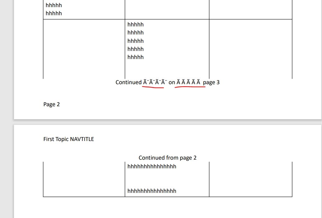 Table continuation markers no longer seem to accept 'special' characters such as é or à.