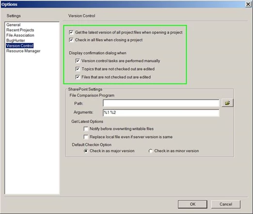 - I copy the P4.scc file to the project folder in my workspace and then open the RH project. The Get Latest Version dialog box appears.