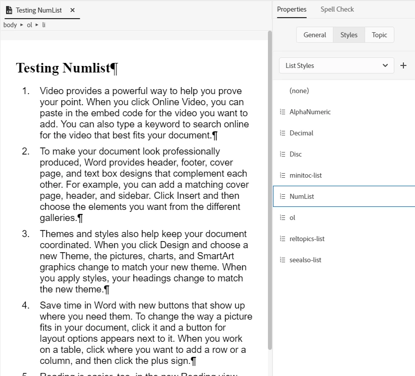 I'll attach my entire CSS file in Notepad. I'm applying the NumList style (which i created) and then using my tab key (or trying to, anyway)and the Word file that we are using to import. The specific location of the problem in the Word doc is page 2 bulleted items (I'm trying to change them to 2nd level style <ol> If anyone knows why this is doing this, please let me know. I'm on a tight deadline (3:00pm) and don't have time to mess with this. Thanks.