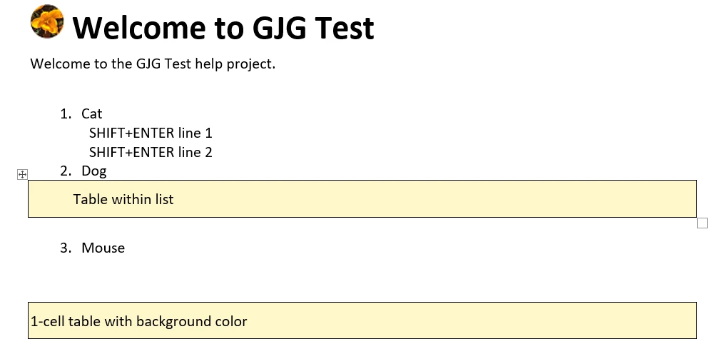In a list I hit SHIFT+ENTER and inserted a table with text for a note I want to stand out in the instructions. In the Word output, the text in the table is indented as expected but the left border of the table is not - it goes all the way to the left side of the page. This is in Robohelp 2020, specifically 2020.3.32.