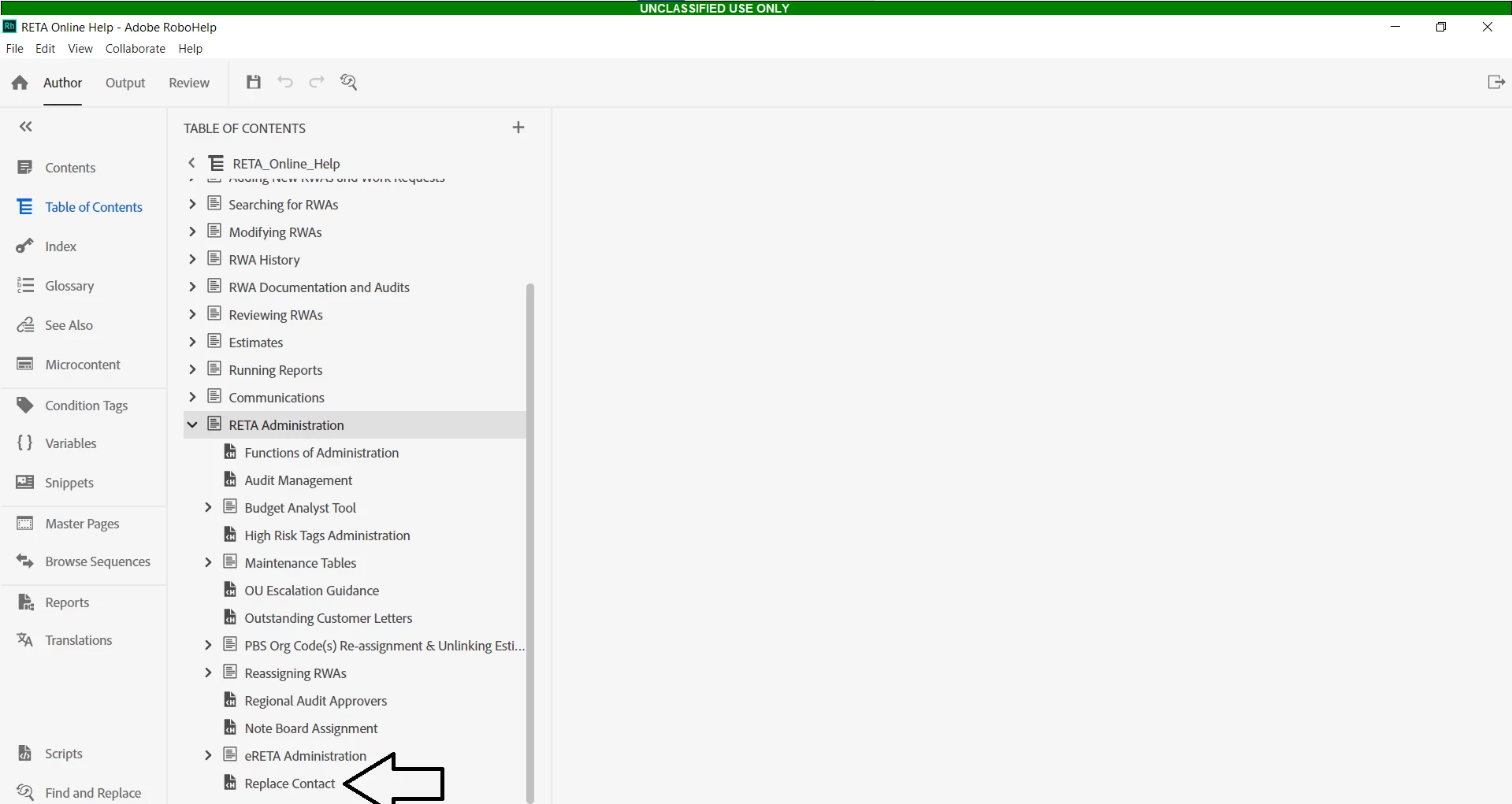 New additions to our table of contents are visable when viewing in RoboHelp (first screenshot), but are not available in the contents section once uploaded to the application (second screenshot).