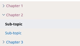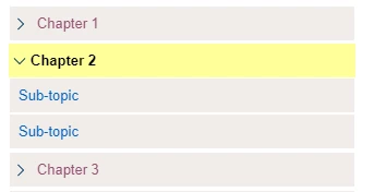 However as soon as I select a chapter all of the text color shifts. Note: the yellow highlight is correct in how I set it up to signify the selected topic item to display.