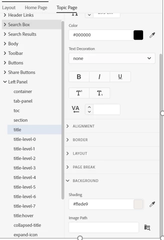 I am not able to locate where I can adjust the table of contents (TOC) in the left panel of the topic page. Specifically, when I click the topic heading (hyperlink) in the TOC the link changes color. I cannot find where I can just the “on-click” color change to select the color I want. Does anyone have any insight on where I can find this?