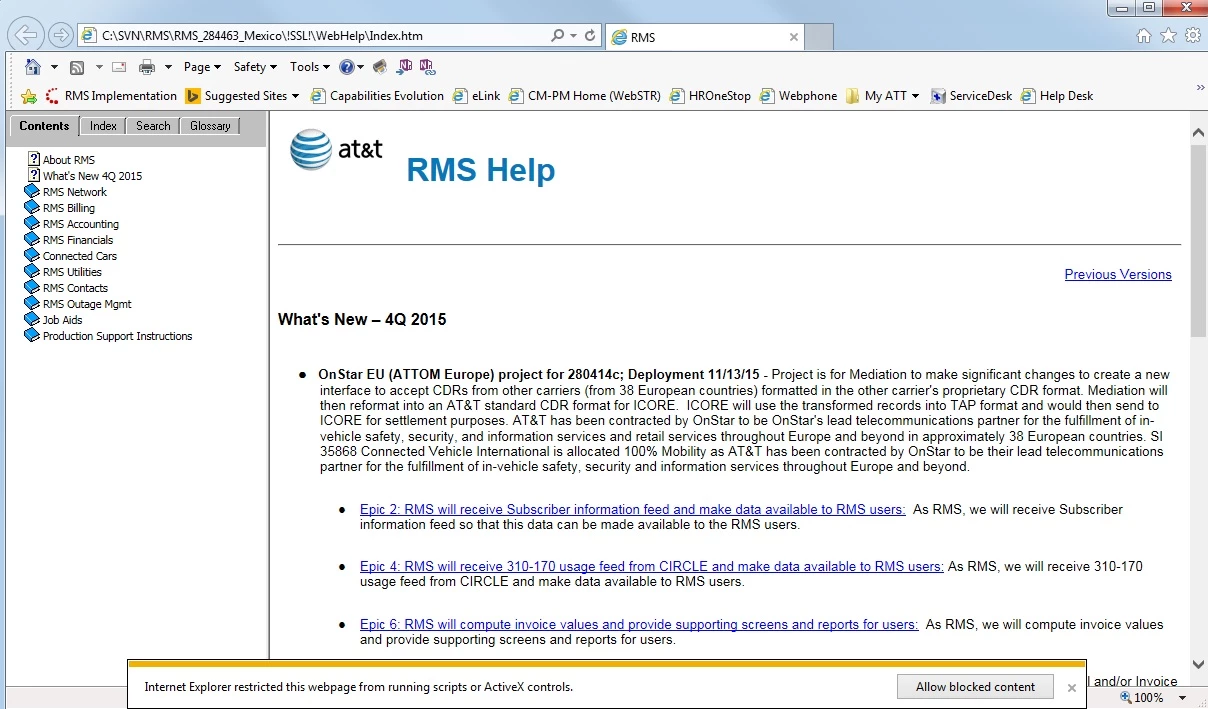 - I noticed when I launched the index.htm in IE, I got the activex error that I used to get in the past but had stopped getting after selected "Allow blocked content." I select again to "Allow blocked content" and I was able to see and use the TOC on IE.