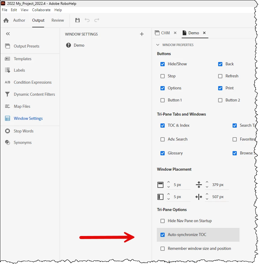 We use Adobe RoboHelp 2020, and I recently updated and redeployed the Helpfile (.chm), including changes to the ToC, various content page changes, and an update to the MAP IDs for context sensitive help. The new file content and context sensitive mapping works correctly, the ToC reflects the new pages etc, however, when a user opens a help file page either via a context sensitive link, or via the Index or Search tabs in the help file left hand pane, the ToC context does not update to match the page in context.