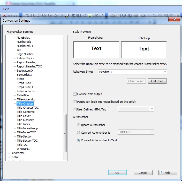 It seems that all of the chapter title styles in my FM books are being brought over with a different name, such as with the name of the project. This issue is only for my FM chapter titles, which before were also topic titles and still are but with a different name. Because I'm linking a book, I cannot re-name the files.