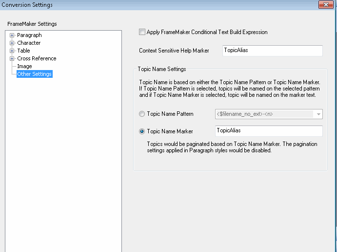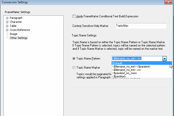 It seems that the conversion settings changed slightly from TCS 2 to TCS 4 and maybe I just don't understand what I need to select. I previously selected Topic Name Pattern to be (Default). Today, I tried different options to no avail. I couldn't get my topic file names to change unless I change the topic name pattern for all the topics (I can't do that for 2000+ files!).