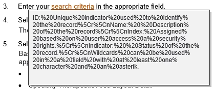 ID:%20Unique%20indicator%20used%20to%20identify%20the%20record%5Cr%5CnName:%20%20Description%20of%20the%20record%5Cr%5CnIndex:%20Assigned%20based%20on%20user%20access%20a%20security%20rights.%5Cr%5CnIndicator:%20%20Status%20of%20the%20record.%5Cr%5CnWildcards%20can%20be%20used%20in%20a%20field%20with%20at%20least%20one%20character%20and%20an%20asterik.