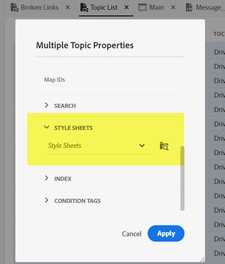 In Robohelp (version 2022.0.346) when I select all the topic and delete the CSS options from the Multiple topic properties window , neither do I  see any CSS applied not do  I see it as an option. But, on checking the topic preperties of an individual topic I see the relative path. (Attaching the screenshot for reference).