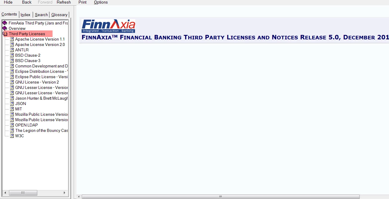 I have created three topics with sub topics in my TOC as shown below, but when i am clicking on the 3rd Book named as Third Party licenses then on the right pane no content specific to that topic is displayed on the page. The right side page shows only some drop down links and no content.