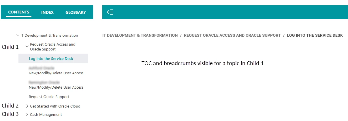I have a parent project and several child projects. I generate output using the merged projects feature. Upon publishing the output, the TOC is visible in the left pane only for 2 of the child projects. When I access a topic from subsequent child projects, the TOC and the breadcrumbs disappear. I have customized the Studio template using RH’s UI to change the color settings, some font settings, etc. This issue didn’t occur until 2 weeks ago. I have tried using an unedited Studio frameless template and regenerating the merged output from scratch to a clean folder. I use the Topic Layout globally from the output preset in the parent project. I’ve included images for reference - tocBrdCrmbVisible, chld3TopicClk, and tocBrdCrmbDisappear.