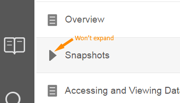 In the example below, I've clicked the "Snapshots" book entry in the TOC. Notice that it expands to display its sub-topics.