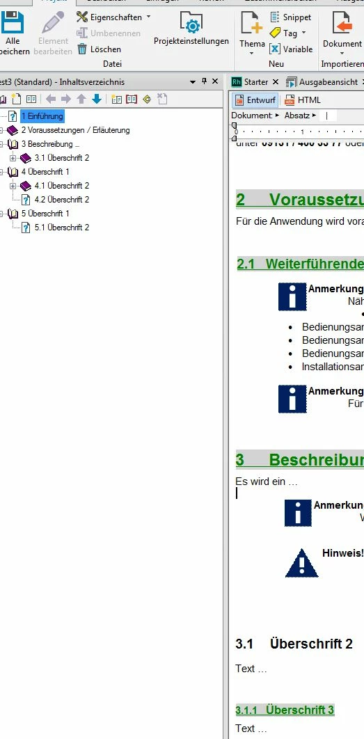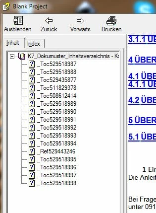 I tried to generate a table of contents (german: Inhaltsverzeichnis).